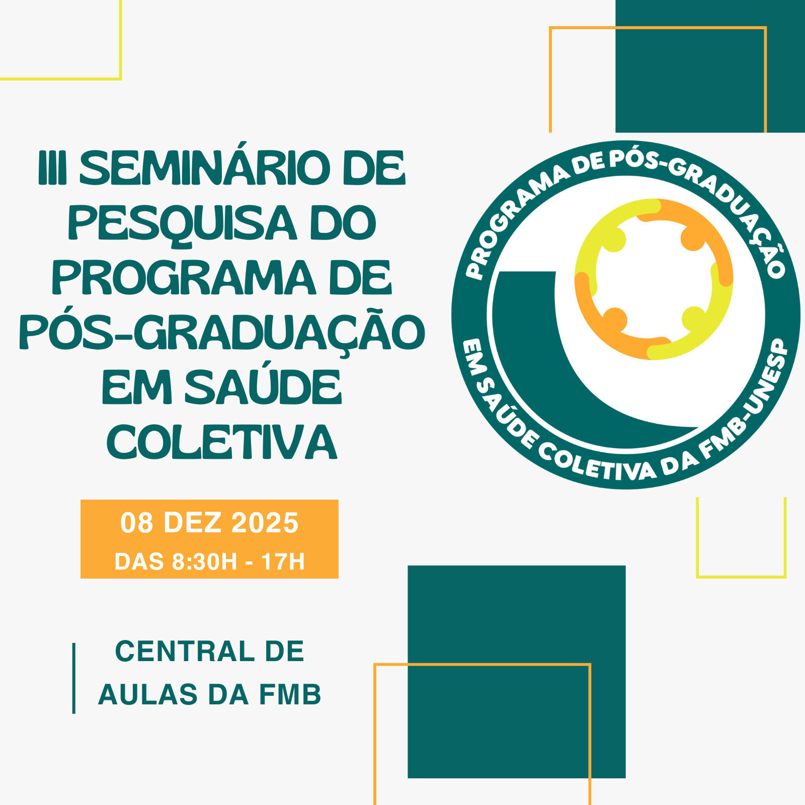 O 3º Seminário de Pesquisa do Programa de Pós-Graduação em Saúde Coletiva é um evento destinado aos discentes de mestrado e doutorado, bem como a todos os interessados no campo da Saúde Coletiva, incluindo profissionais e estudantes de áreas afins. O seminário oferece palestras sobre temas atuais e sobre a própria pós-graduação, além de proporcionar aos alunos a oportunidade de apresentar seus trabalhos em salas pequenas, favorecendo a discussão, a troca de conhecimentos e experiências entre participantes, independentemente da fase do projeto ou do ano de ingresso no programa. |